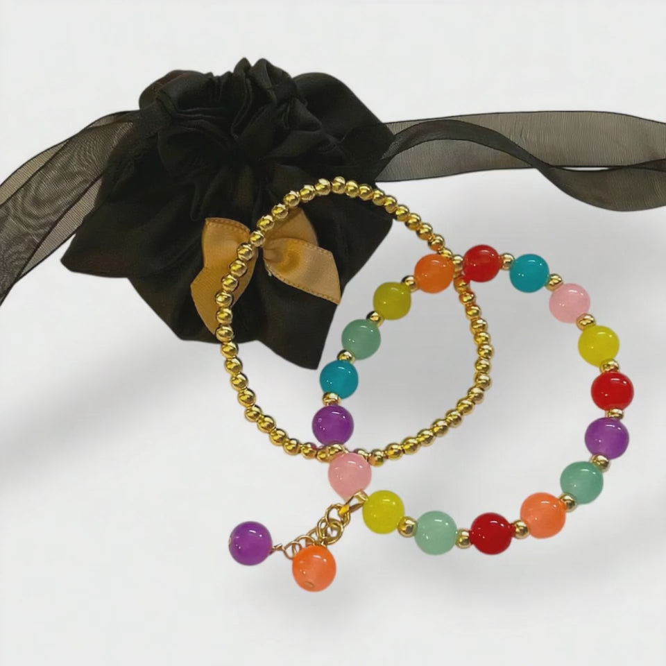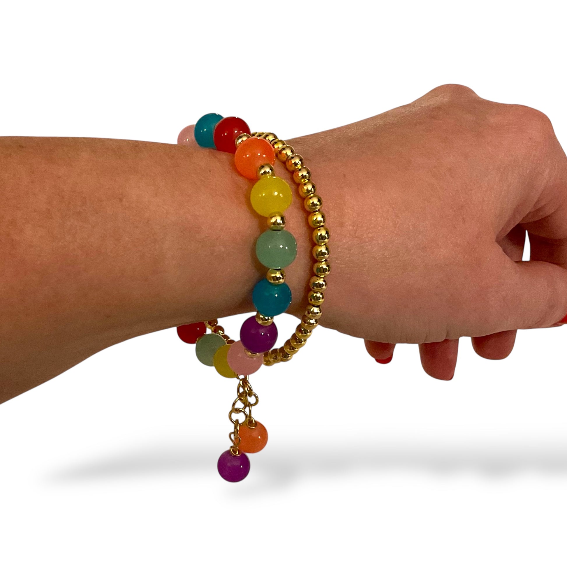 A joyful, colour-rich bracelet featuring a beautiful mix of vibrant glass beads, carefully balanced to feel playful yet refined. Each bead catches the light differently, creating a bracelet full of movement, sparkle and personality.