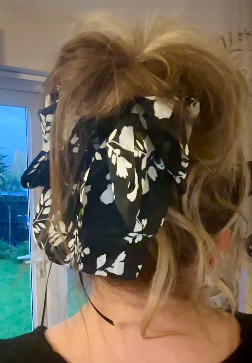 Upgrade your hair game with this stunning Floral Double Bow Hair clip! Made with floaty fabric, this black and white floral clip features a large double bow and an claw clip for easy styling. Get a girly touch and elevate your updo in minutes.