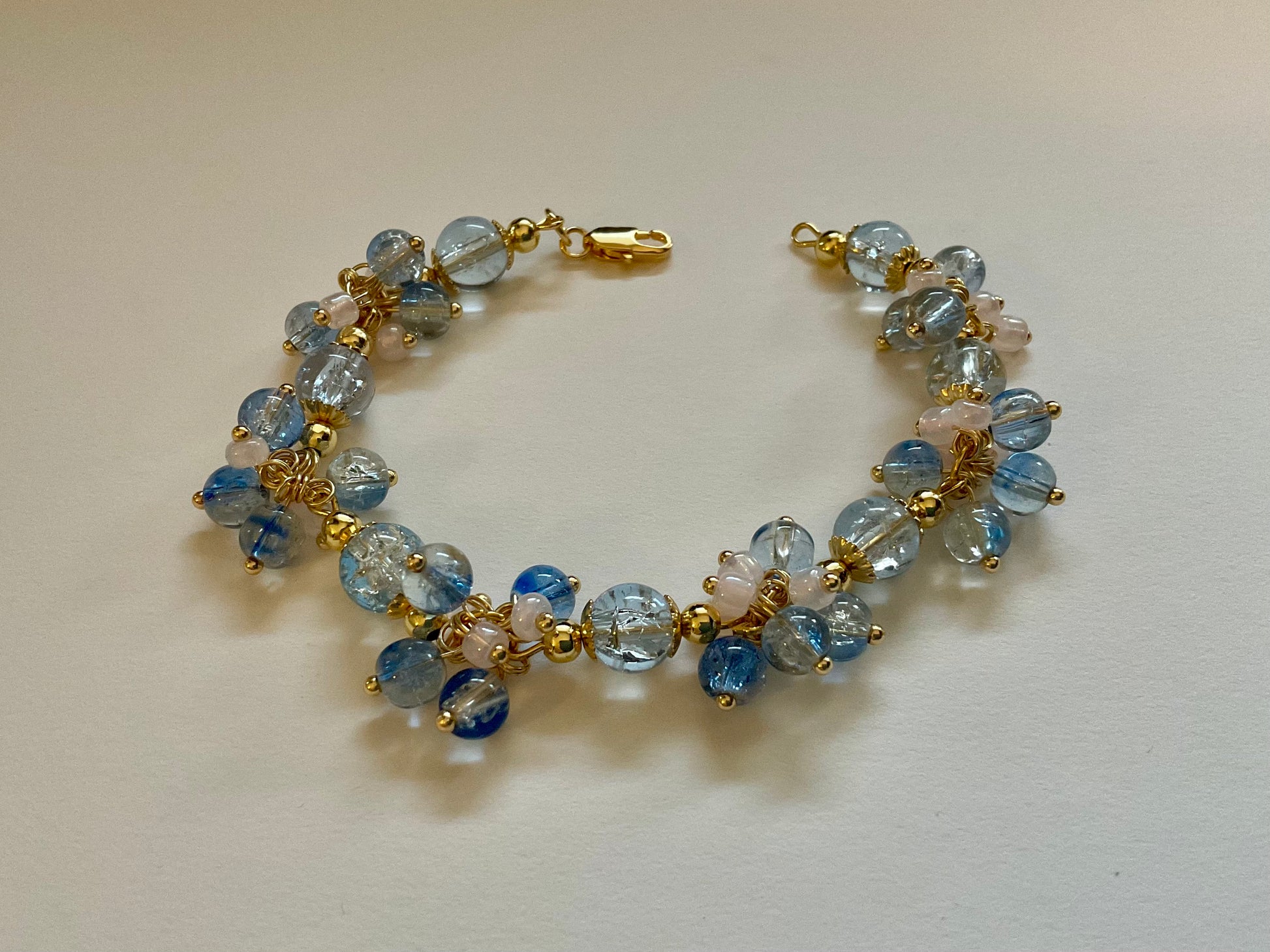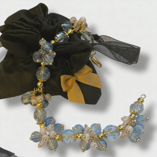 Hand-linked on gold-plated findings, each charm moves independently, giving the bracelet a full, textured, boutique-quality finish. The mix of cool blue tones with the warmth of gold makes this piece perfect for both everyday wear and special occasions.