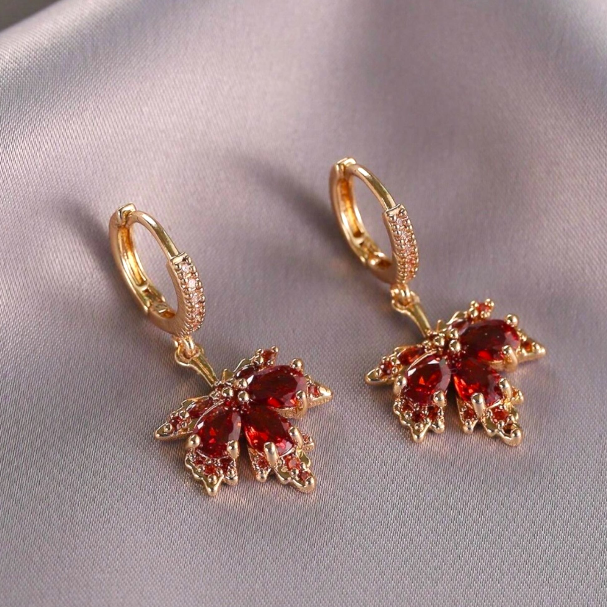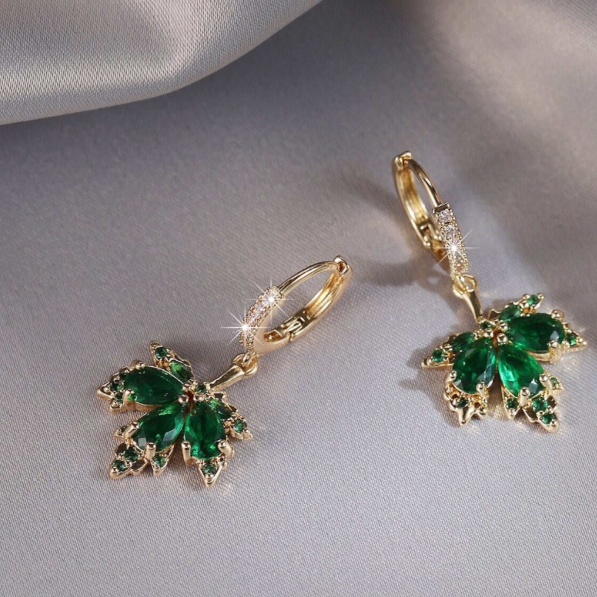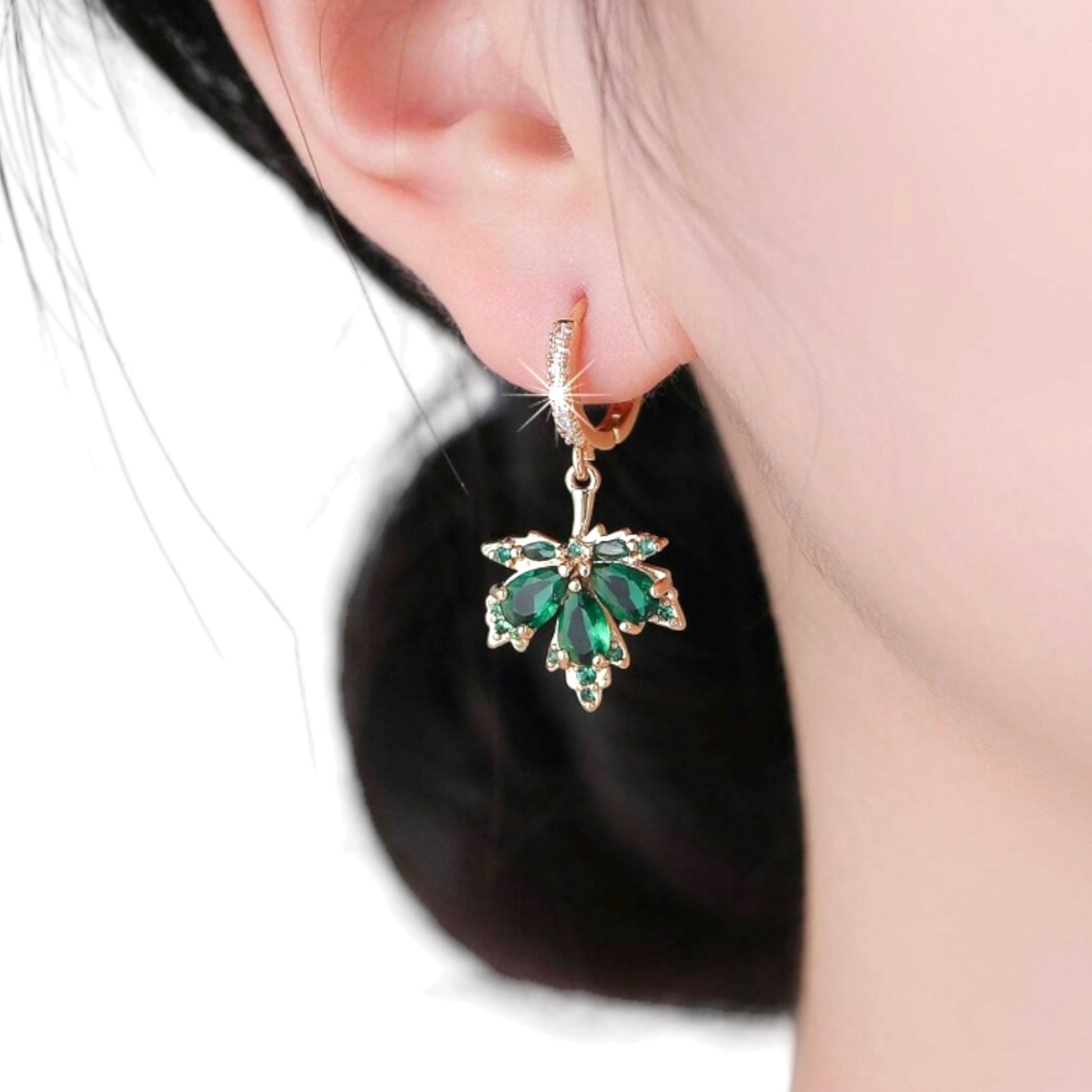 Dance with Mother Nature in these playful Maple Earrings Gold! Let the stunning gold metal shine with the vibrant green or burnt orange cubic zirconia stones, accented by sparkling clear CZ on the loop. A unique addition to any outfit, these earrings will make you stand out in a fun and quirky way.