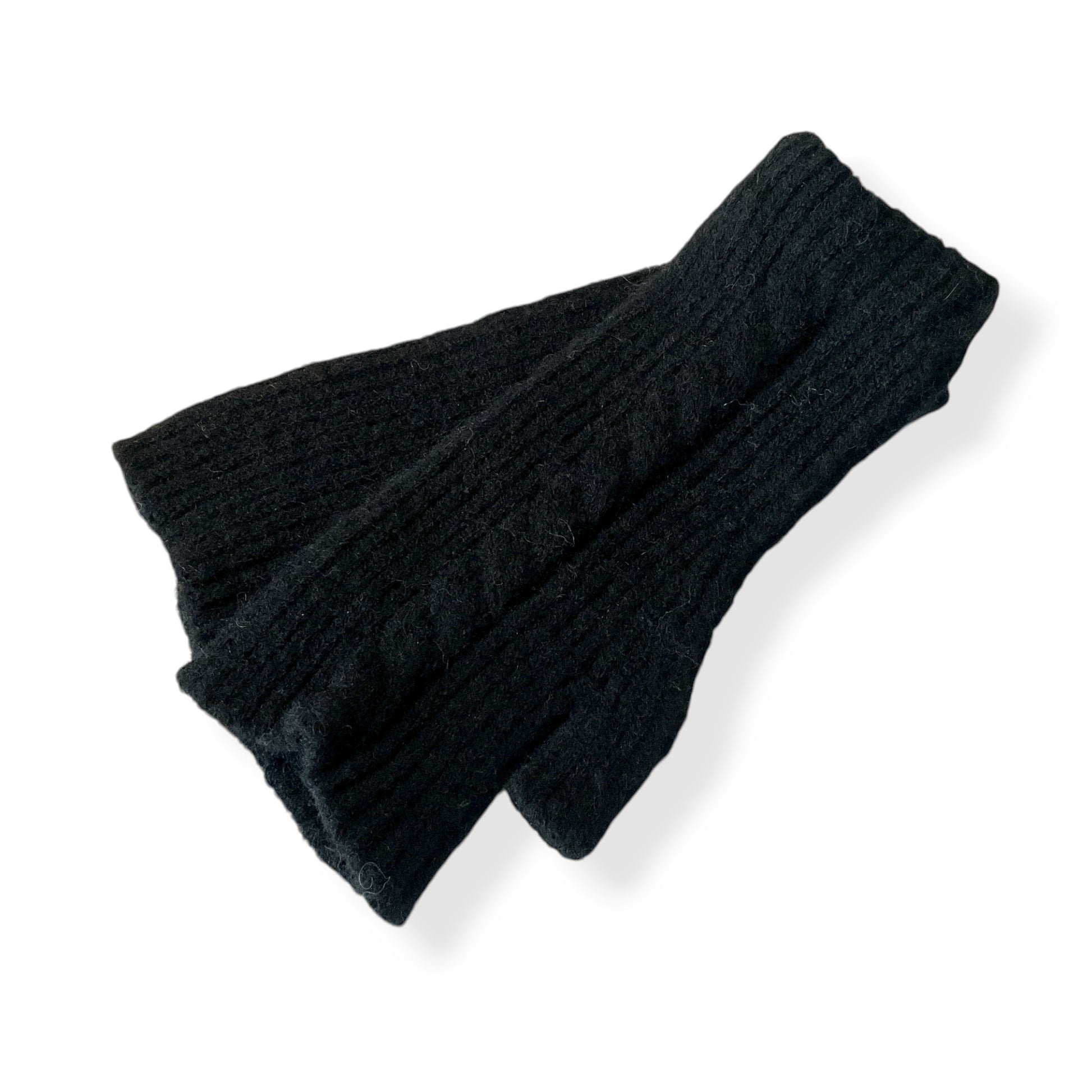 These fingerless mittens are made from a combination of acrylic and wool materials, making them both comfortable and durable. They are also machine washable for easy care.