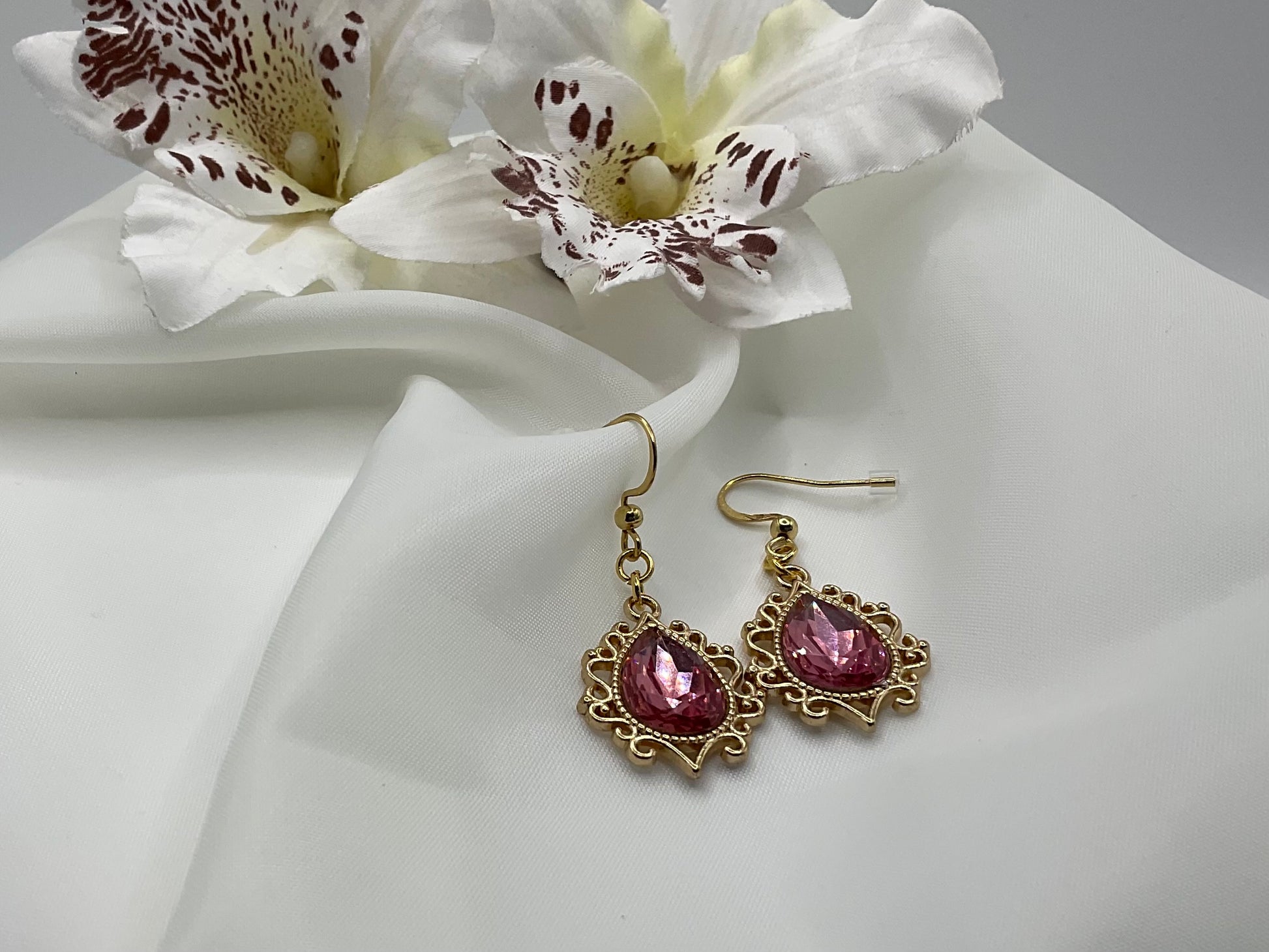 Ornate. Sparkling Gemstone 18k Gold Plated Earrings