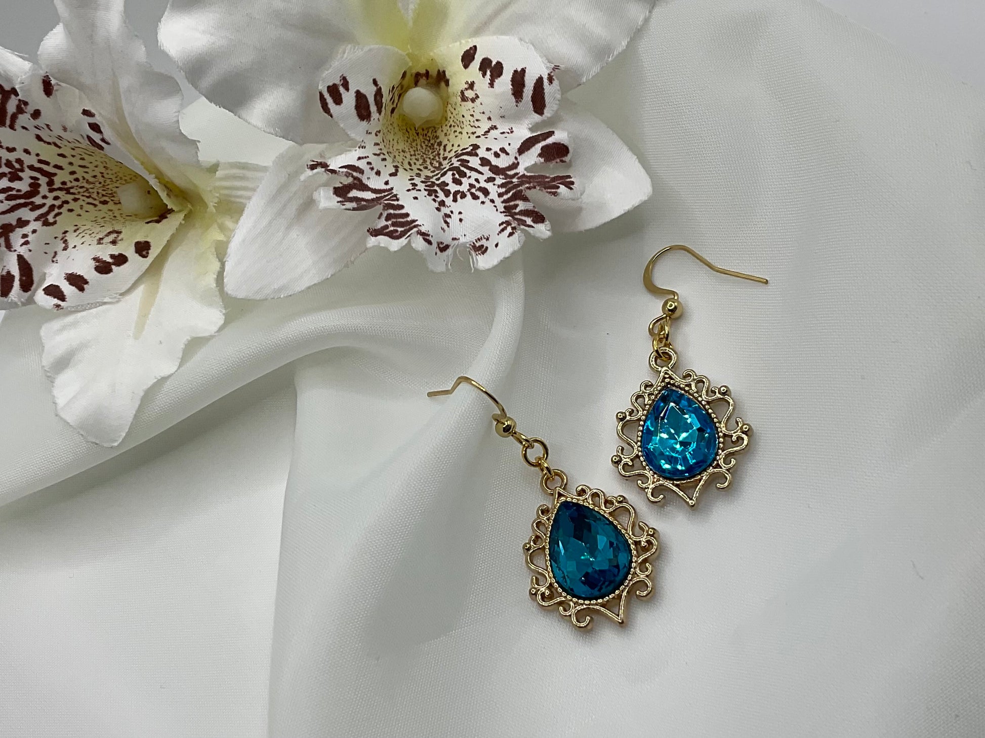 Get ready to dazzle with these handcrafted, 18k gold plated, dangling earrings featuring a stunning large, sparkling gemstones, set in a beautiful Ornate setting. Grab a pair of these beautiful and quirky earrings and add a touch of glamour to any look.