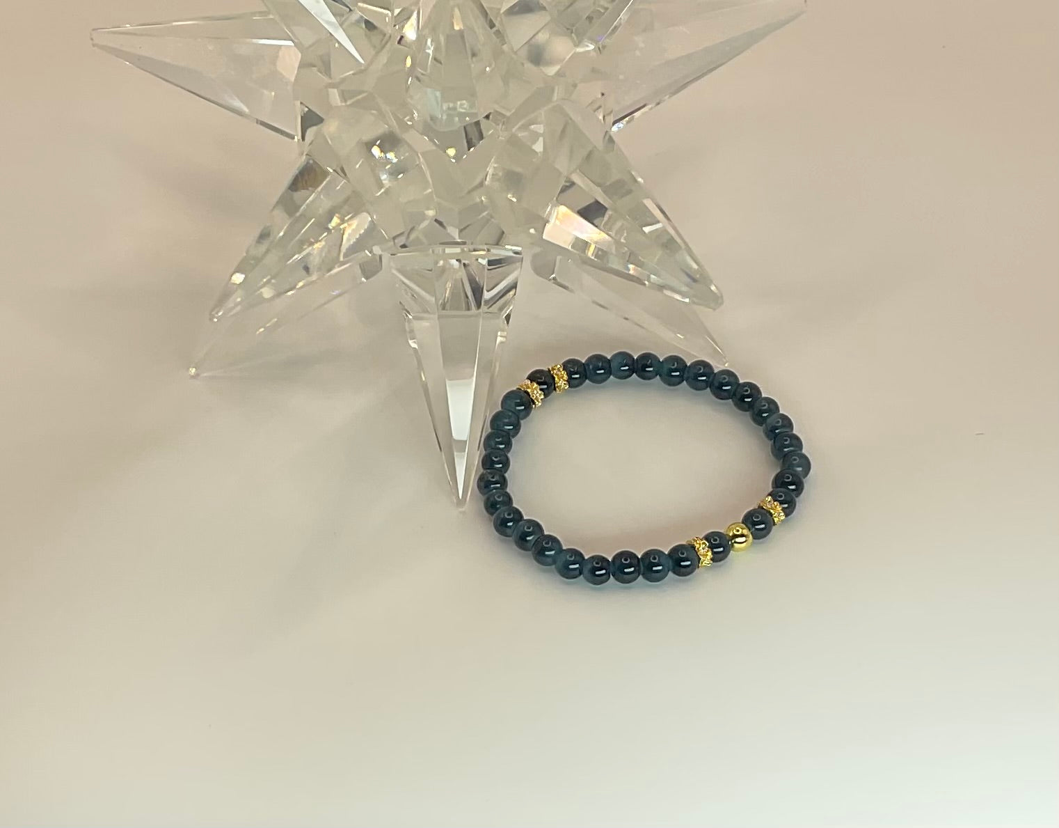 Strung on durable crystal elastic and finished with gold-toned detailing, this bracelet is designed for comfort, longevity and everyday wear.